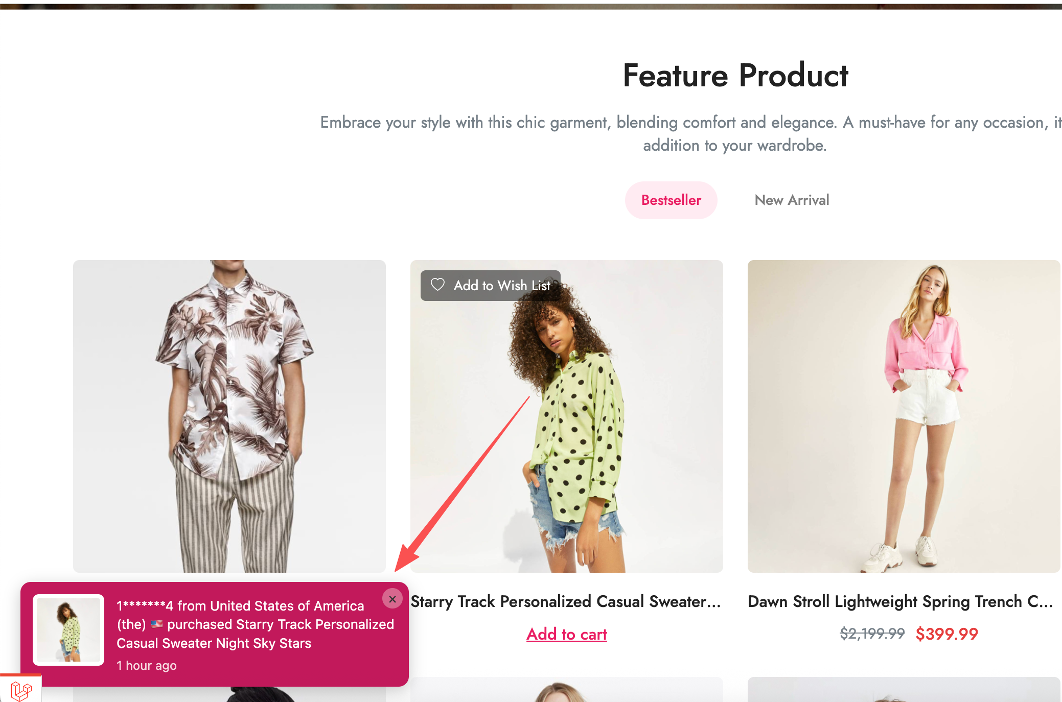 - 例如:“来自美国的 John 刚刚购买了此商品”。